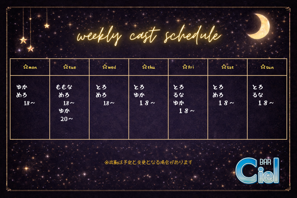 2026/01/12~01/18シフト 2026.01.08 Tweet 2026/01/12~01/18シフト シフトはあくまで予定となっており、予告なく変更となる場合がございます。 最新情報は各キャストのSNSも併せてご確認いただけますと幸いです。 Category:schedule タグ:シフト Author:Ciel /blog/blog_comments/captcha/92013016 /blog/blog_comments/get_token