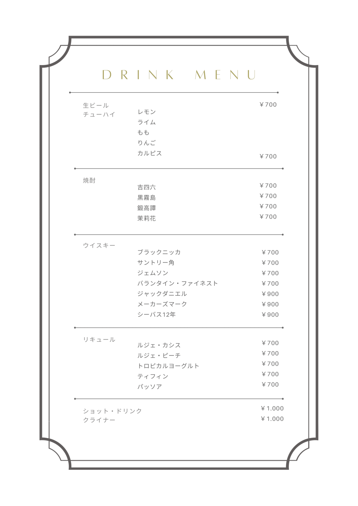 ドリンクメニュー