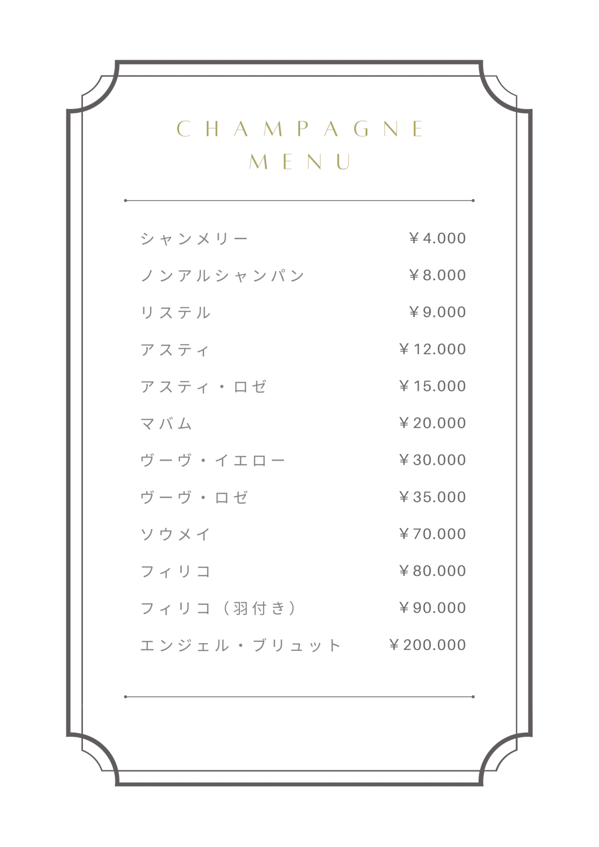 シャンパンメニュー